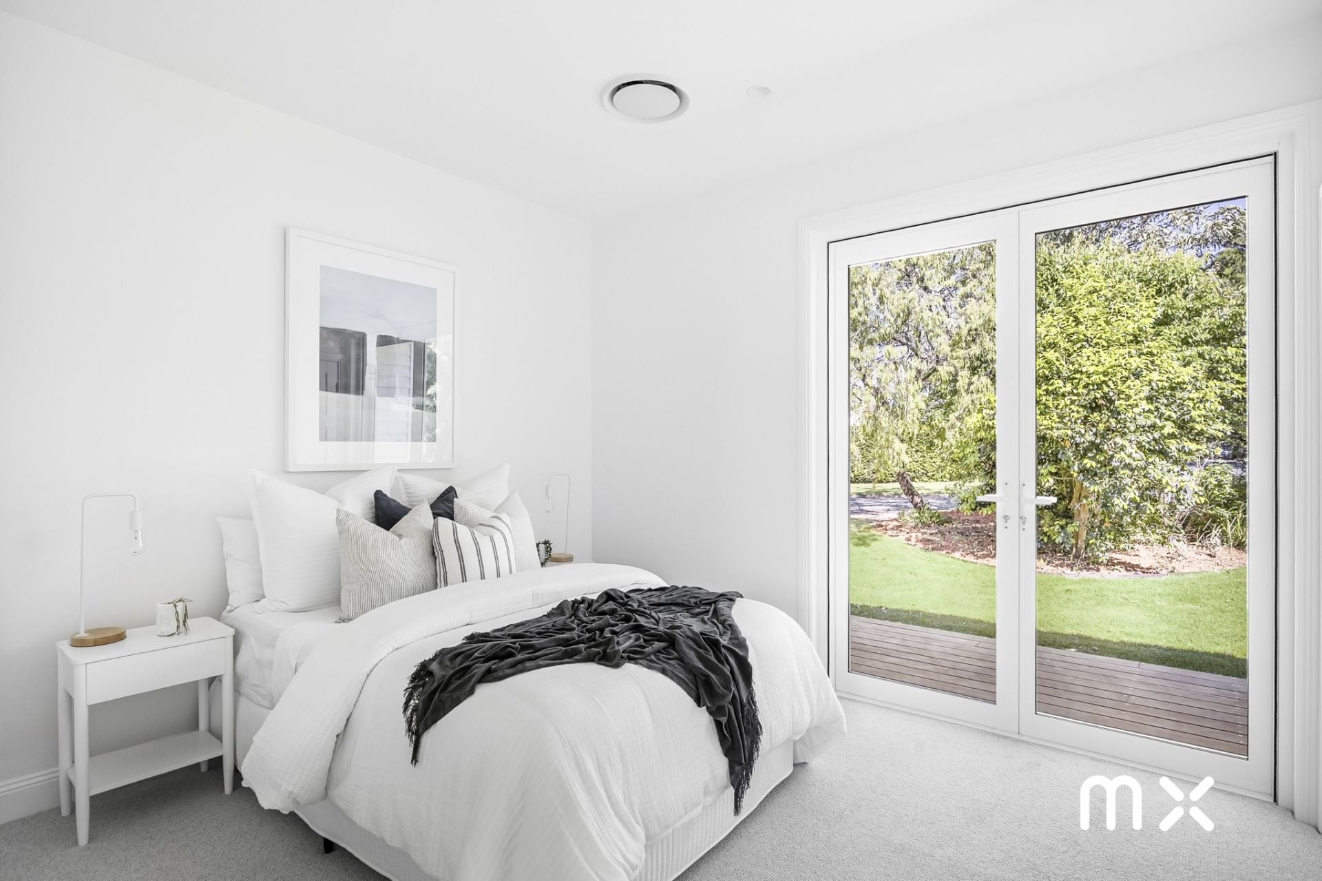 > master suite with walk in robe, quality ensuite and access to balcony overlooking lush yard and garden