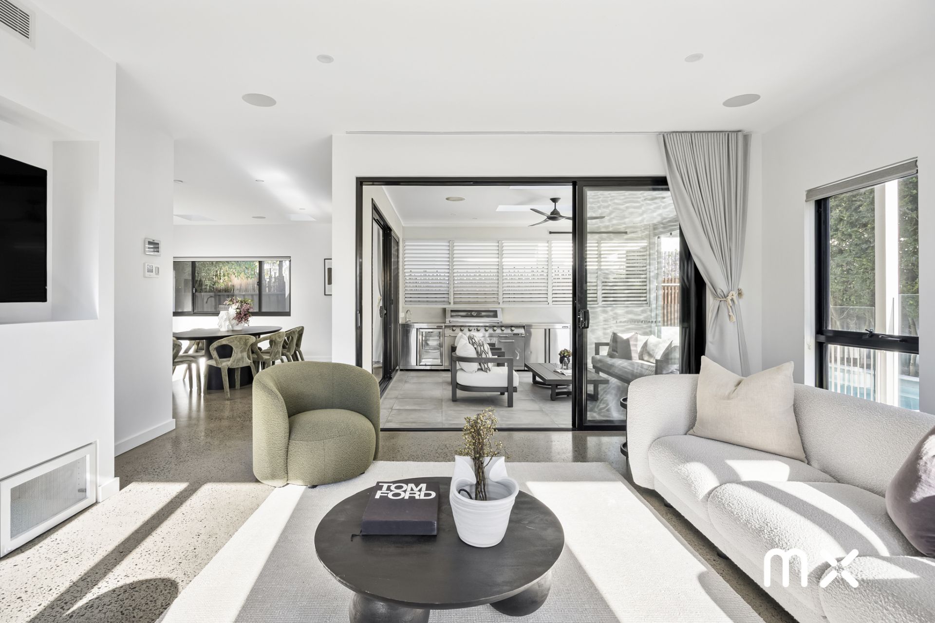 > light-filled interiors with high ceilings and coastal finishes