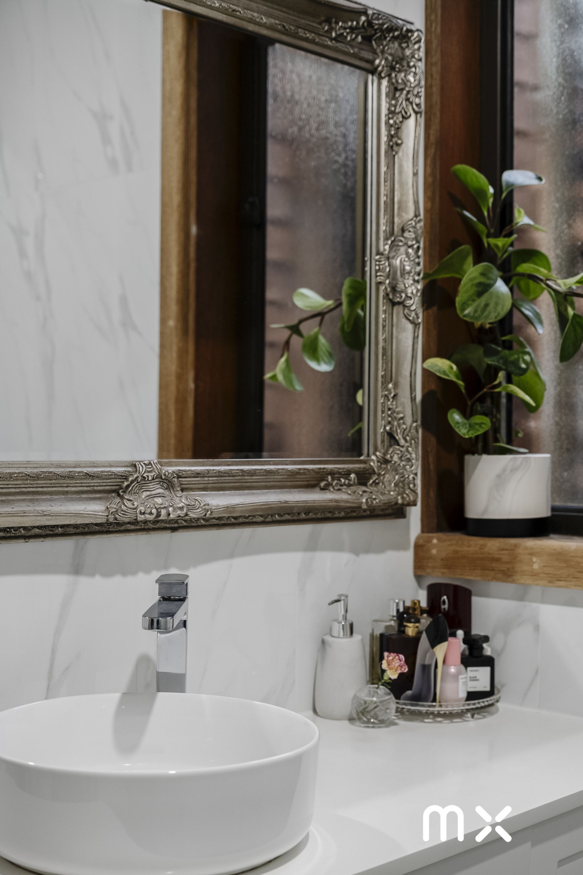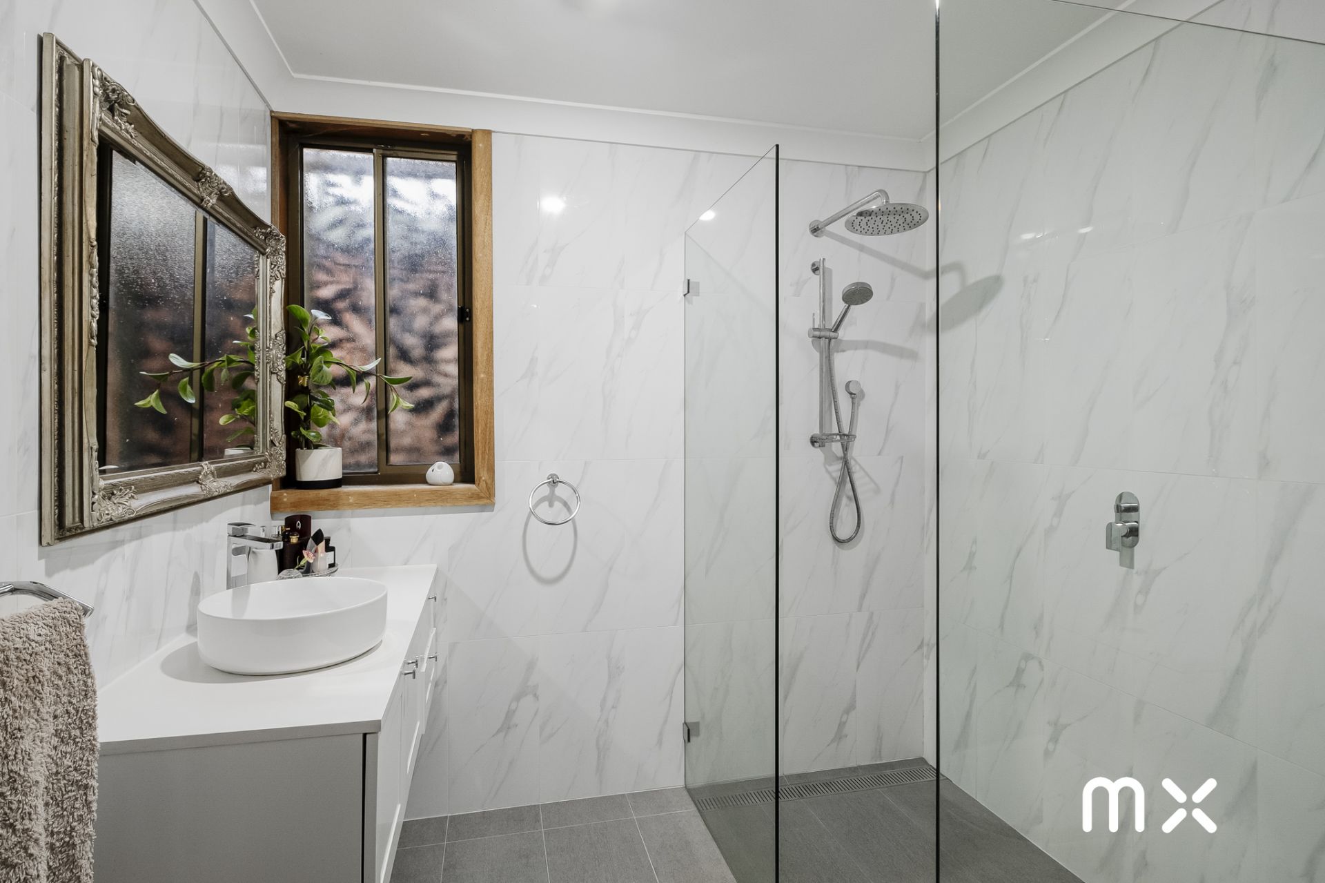 > modern bathroom with quality finishes and floor-to-ceiling tiling
