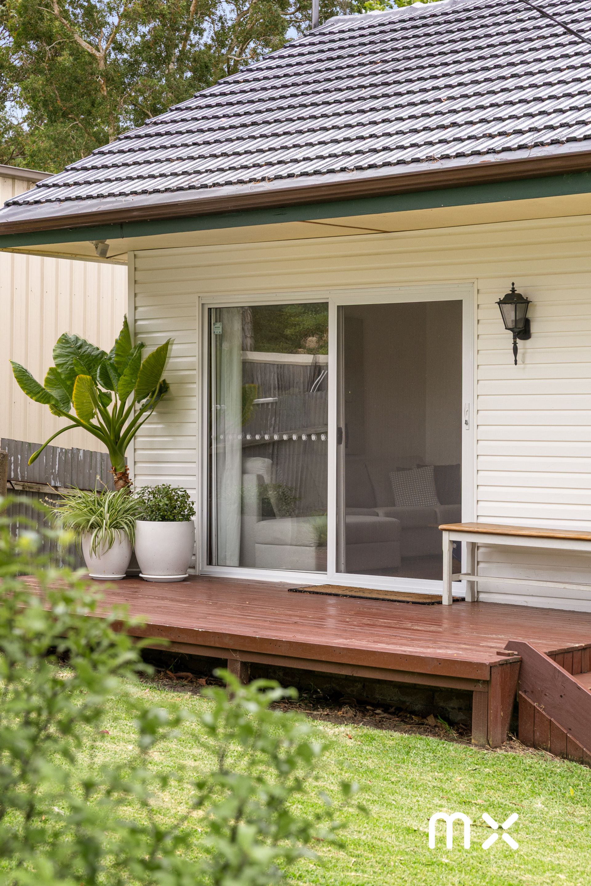> peaceful deck enjoys leafy outlooks and complete natural privacy