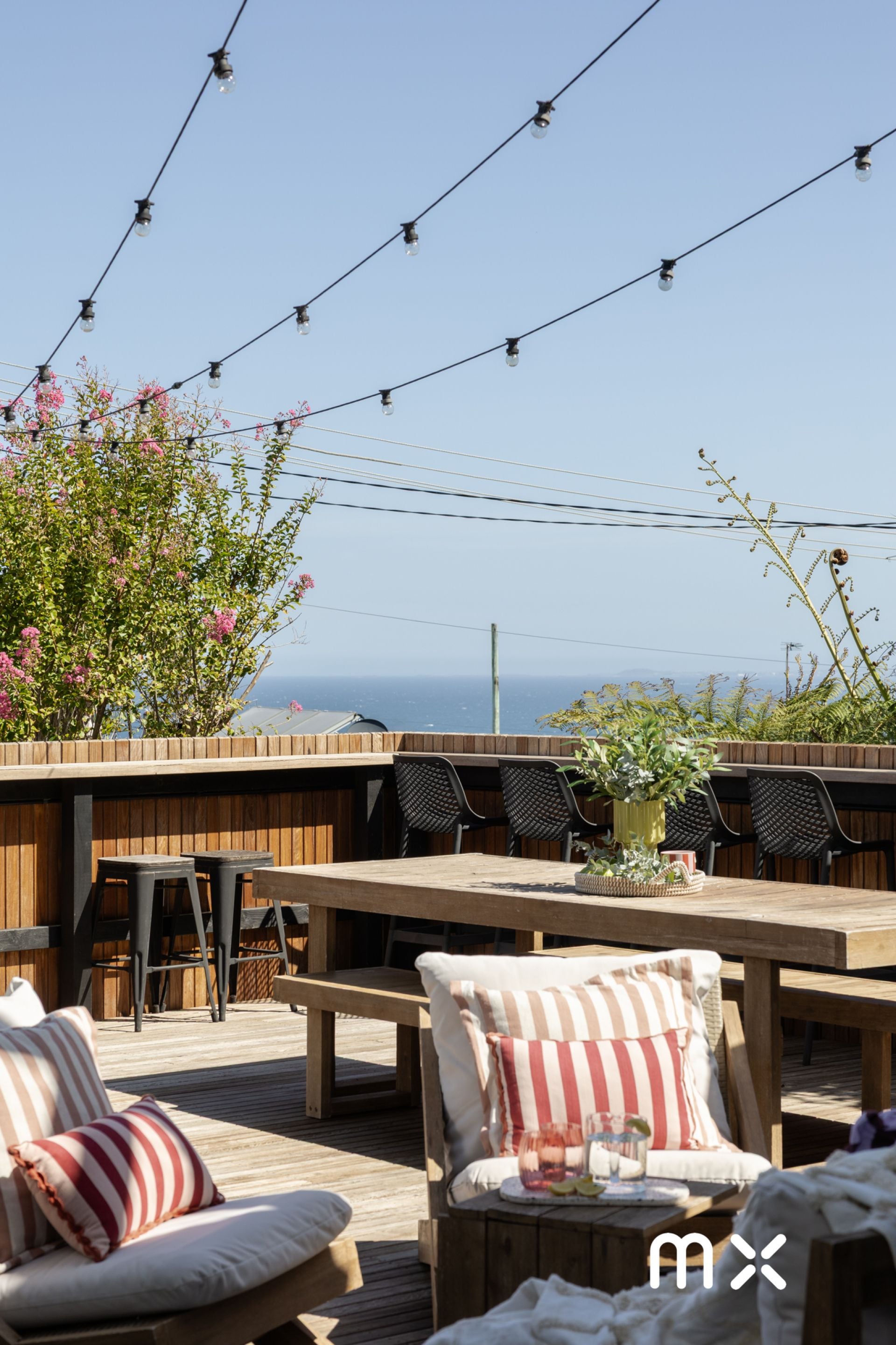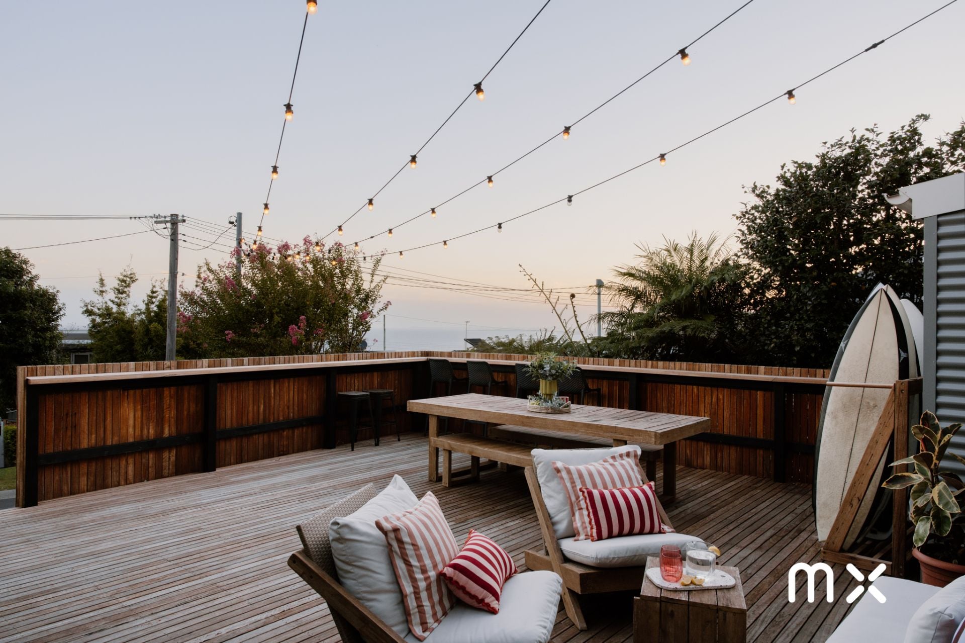 > boundless balcony and downstairs alfresco absorbing natures beauty of the ocean and escarpment throughout the day, evening and night; great for entertaining